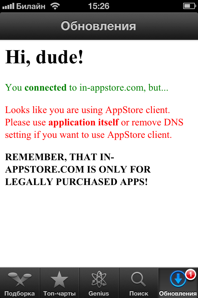You should use in-appstore.com only when you want to get in-app purchase for free. After “purchasing” you must unset DNS. You can set it again without certificates installation to access in-appstore again.