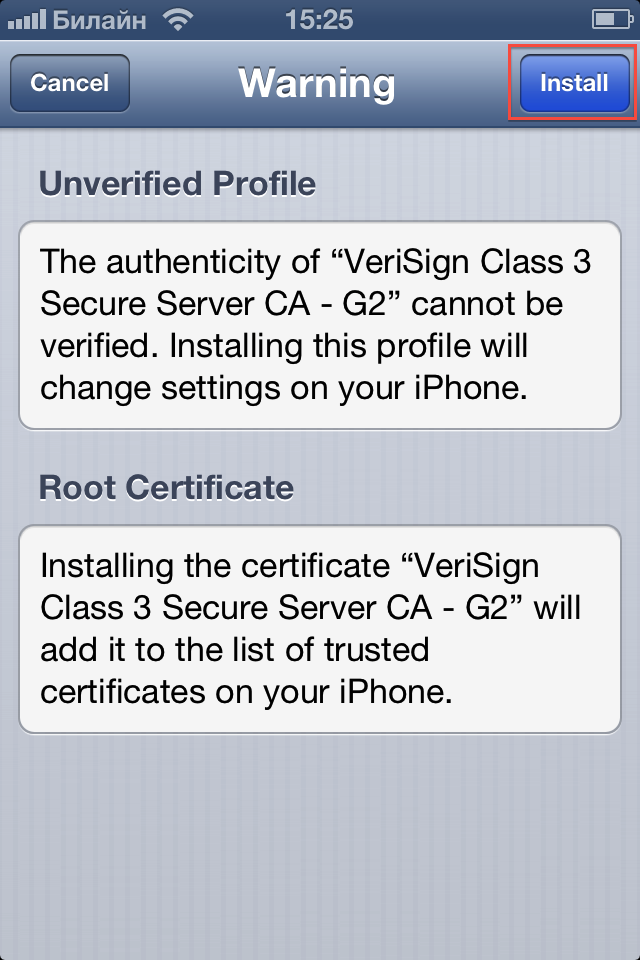 Open this page into your iDevice. Install these certificates (just tap on links): First, Second. The order of installing is very important! Install first certificate first, second - second.